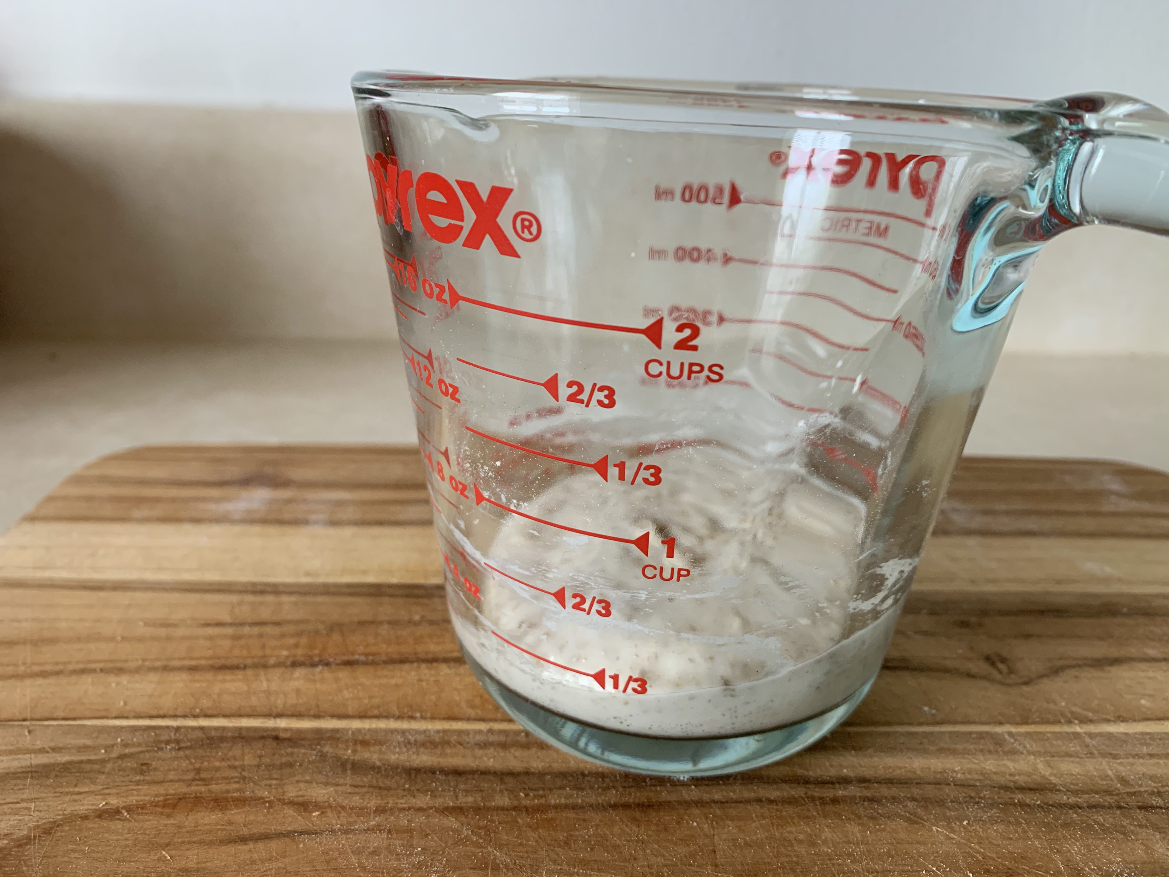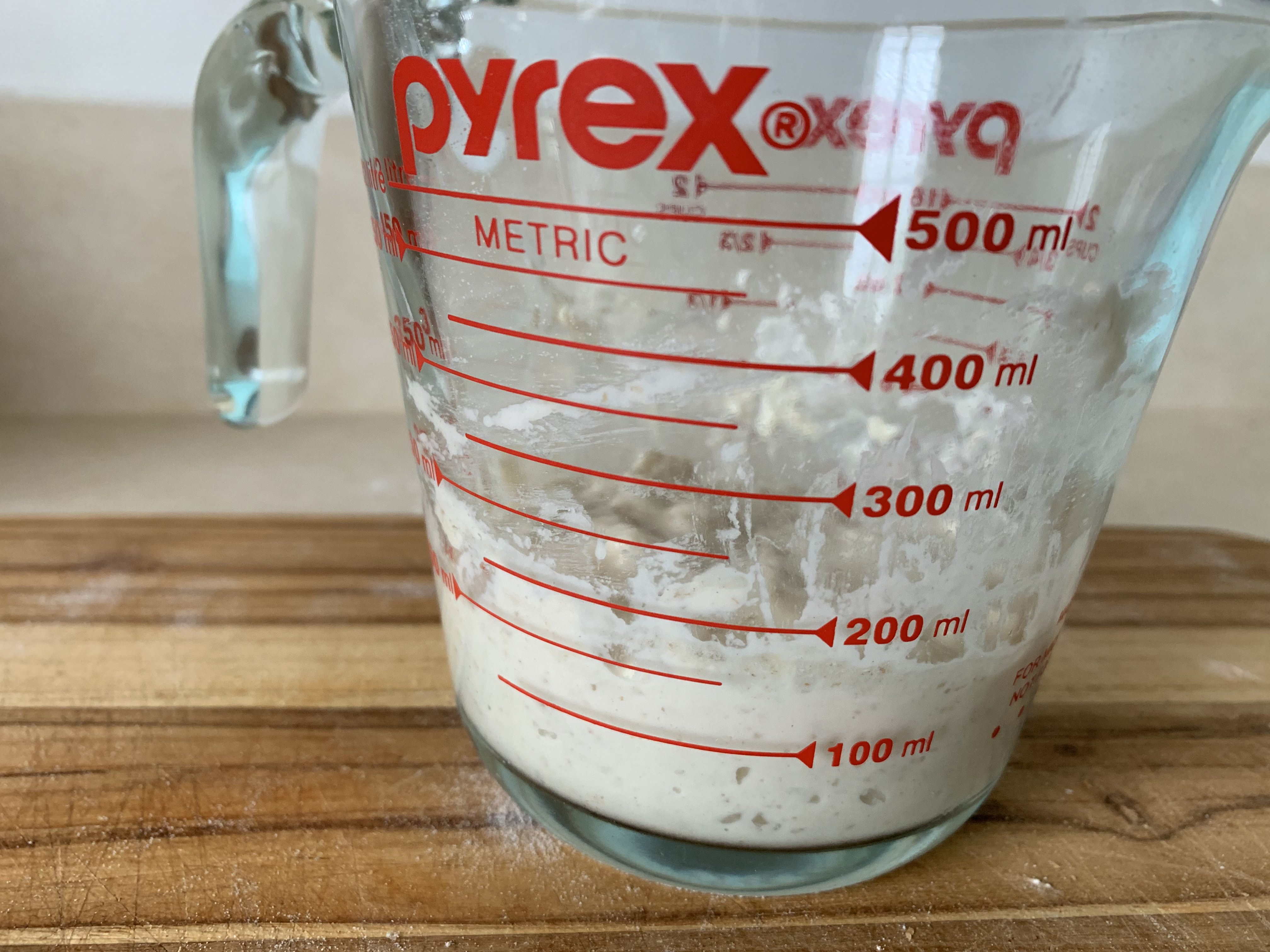 Instead of feeding the levain once (15g starter, 50g water, 50g flour), I now build it up over two feedings. The best schedule I have found is this: