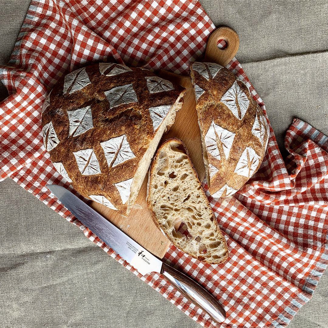 This would not be a Bread Journey post if I didn’t mention scoring. Because all my breads look different they also, somehow, taste different to me! If you’re too intimindated to mess with your trusty recipe, or if you just think you hit the wholy grail of flavors and there is nothing better that that, you can still bring your bread up a notch with nothing but a spool of sewing thread and a blade. If you’re familiar with my shtick, just enjoy one of my latest videos for inspiration (below). If this is new to you, you might want to check out my post on scoring technique here.